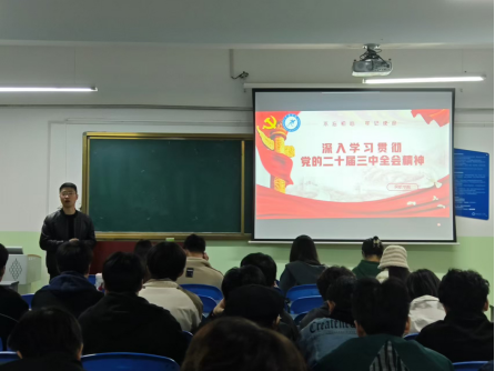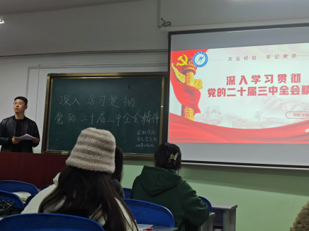 为贯彻落实学习党的二十届三中全会精神,加强党员、积极分子的思想建设,提高党员、积极分子的政治觉悟和理论水平,激励同学们在新时代勇担使命,奋发向前。在线买世界杯平台学生党支部于2024年10月23日在教学北楼433教室开展“深入学习贯彻党的二十届三中全会精神”主题学习活动,全体学生党员、预备党员、入党积极分子参加了本次学习活动。