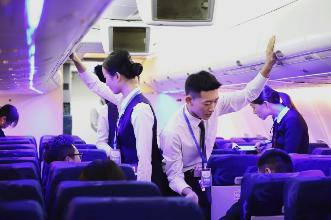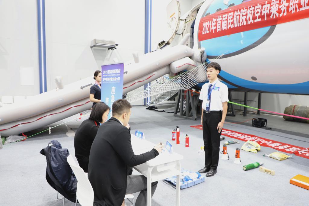 本次大赛以“1+X 民航空中服务职业技能等级证书标准”为竞赛内容,围绕基于典型工作任务的客舱安全与服务核心技能,设置了理论知识考核、综合能力考核(包括机上广播、应急设备、机上急救)及模拟舱安全服务三部分五个竞赛模块,重点考察客舱安全与服务技能的综合运用情况。