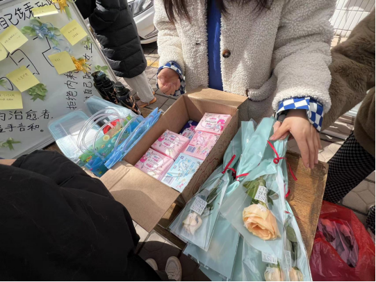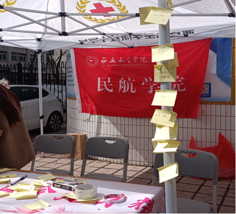 3月7日,在线买世界杯平台在“航益 餐厅”门口开展以“做自己的自由树”为主题的节日活动。