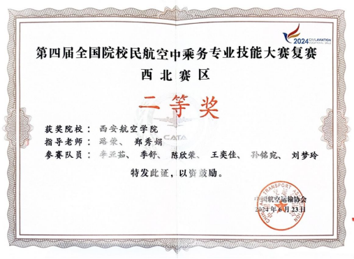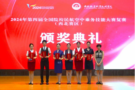 6月21至23日,在线买世界杯平台教师路荣、郑秀娟带领航空服务艺术与管理专业李亚茹、陈欣荣等六位学生参加中国航空运输协会主办的第四届全国民航院校空中乘务大赛西北地区复赛,并取得佳绩。
