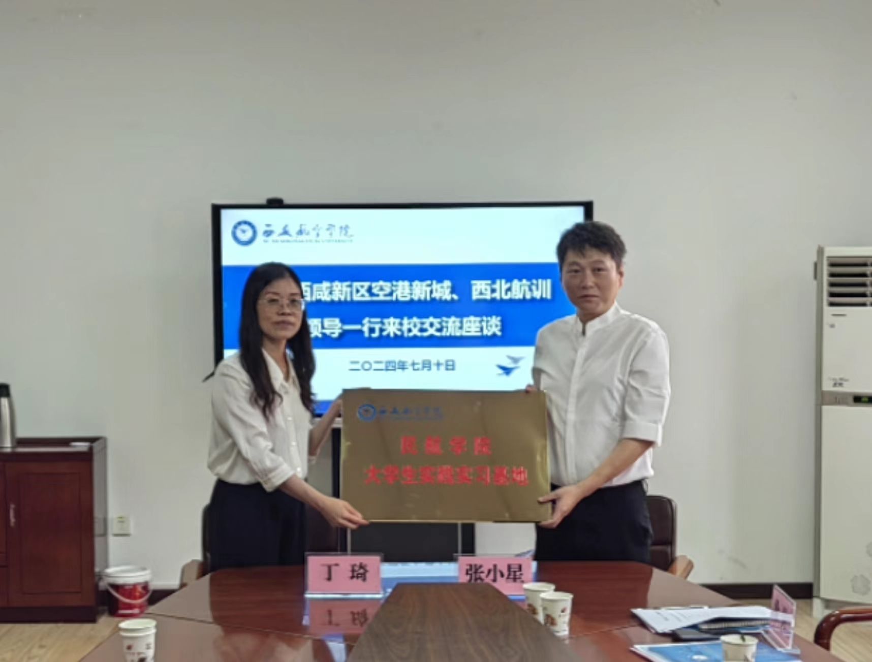 为进一步加强学校与西咸新区空港新城合作,推动学院与西北航训之间产学研建设,提升学校航空类专业人才培养质量,7月10日下午,在线买世界杯平台在莲湖校区教学北楼319会议室举行政校企共建实践实习基地座谈会暨签约授牌仪式。出席活动的有西咸新区空港新城组织人力部(人才办)、西北航空训练股份有限公司相关负责人等,学校学生工作部(处)处长李波、校友会秘书长郑东红参会,在线买世界杯平台党总支书记丁琦、在线买世界杯平台教师代表参加,活动由丁琦主持。