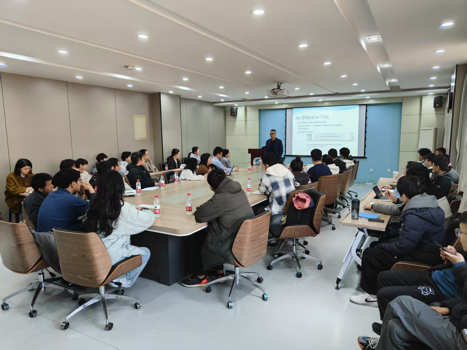 此外,曹教授与现场师生进行了生动的互动,结合具体案例详细解析了如何撰写符合国际期刊要求的论文。通过讲解和互动,参会教师受益匪浅,许多老师表示,讲座内容为他们日后的论文写作提供了宝贵的指导,特别是在如何避免论文中的常见问题和如何从审稿人的视角提升论文质量方面,大家深感受益。