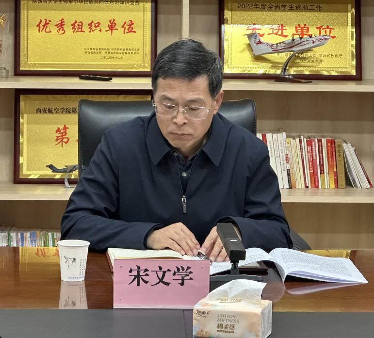 宋文学指出在线买世界杯平台新一届领导班子要按照学校党委的要求,全面从严治党,加强管理。并就在线买世界杯平台下一步工作提出三点建议:一是要坚持把握好政治方向,班子精诚团结,建立良好的工作氛围;二是要坚持团结全院教师,为教师工作营造良好氛围,调动全体教师积极性;三是班子要学会聚焦内外资源,利用低空经济这个新赛道,开展教学科研、校企合作等方面工作。