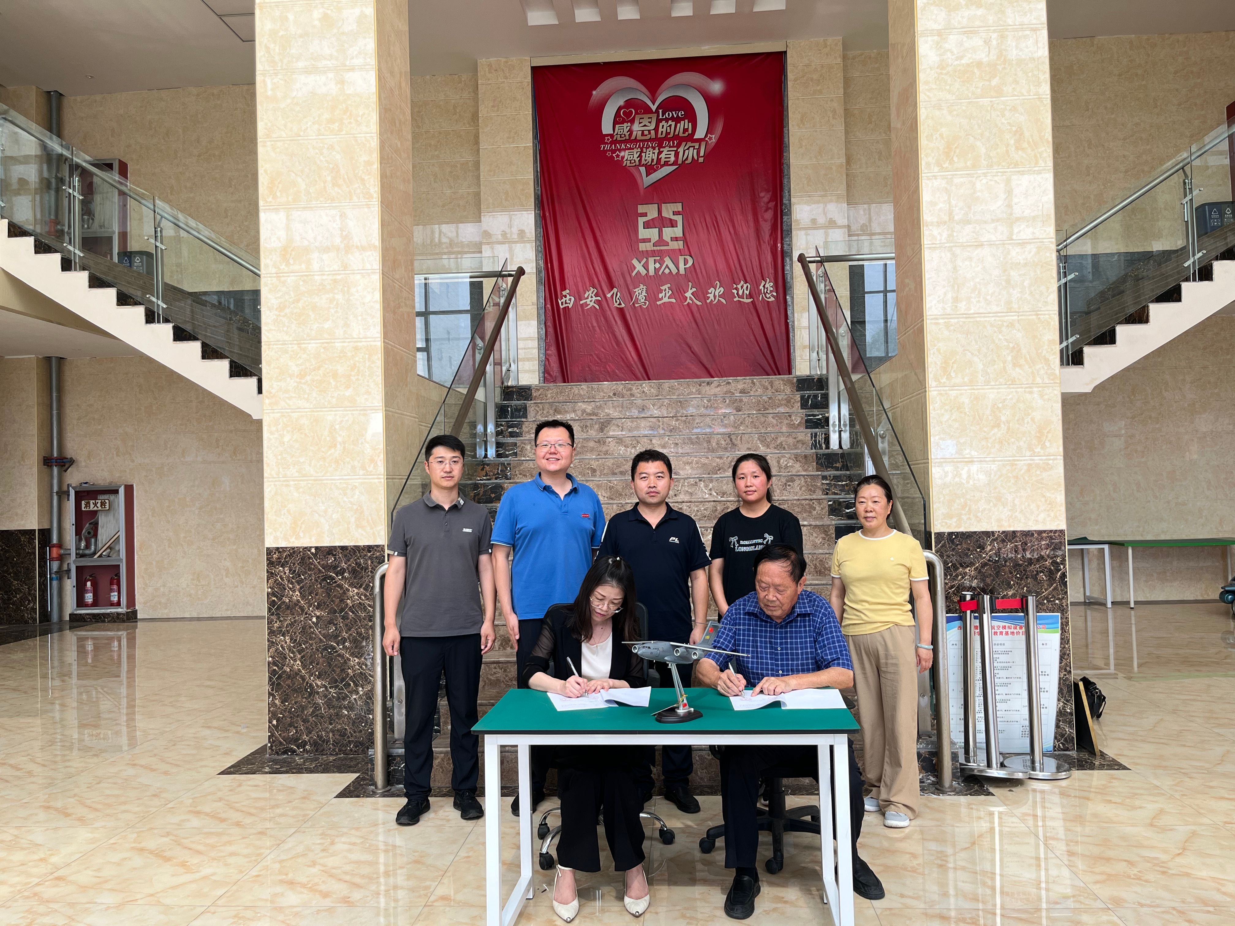 2025年7月10日,在线买世界杯平台与西安飞鹰亚太航空模拟设备有限公司校企合作签约暨实习基地挂牌仪式在西安飞鹰亚太公司顺利举行。在线买世界杯平台党总支书记丁琦、航空管理教研室主任寇猛、学生管理科科长王宏超、航空服务艺术与管理专业负责人张阳一行出席仪式,西安飞鹰亚太航空模拟设备有限公司总经理张宝柱代表企业方签署协议并共同揭牌。