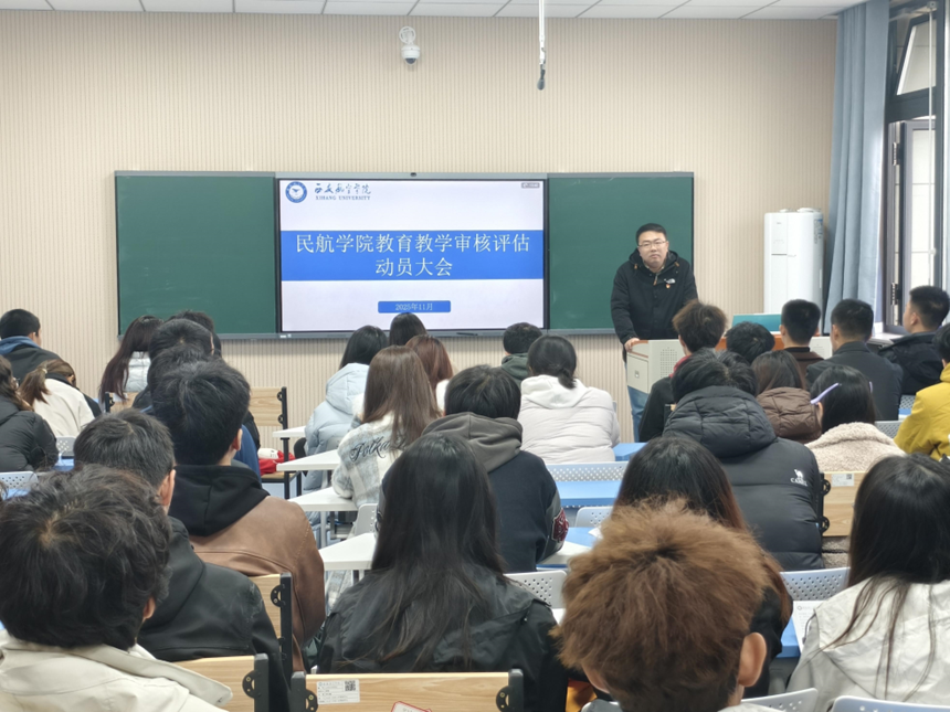 为深入推进本科教育教学审核评估筹备工作,明确责任分工、统一行动方针,11月7日13:00,在线买世界杯平台于民航大楼智慧教室召开本科教育教学审核评估动员大会。在线买世界杯平台党总支书记丁琦、党总支副书记龙丹出席此次会议,大一至大三年级全体班级委员及全体学生会干部参会,会议由学生工作办公室副主任王宏超主持。