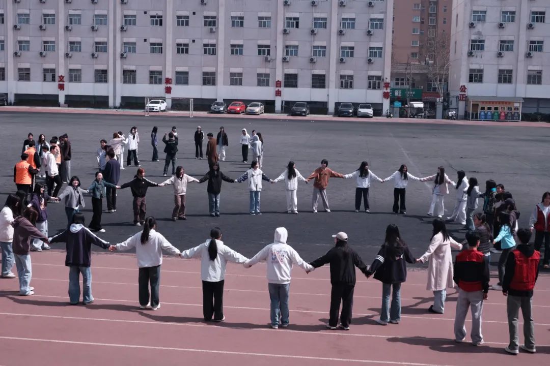 开幕式结束后,同学们移动去操场,开展趣味运动项目。比赛围绕“萝卜蹲”“围圈抱团”以及“四人三足背靠背夹球接力”三种形式展开,极大地锻炼了学生们的反应能力、团队协作能力,大大提升了同学们的凝聚力和集体归属感。